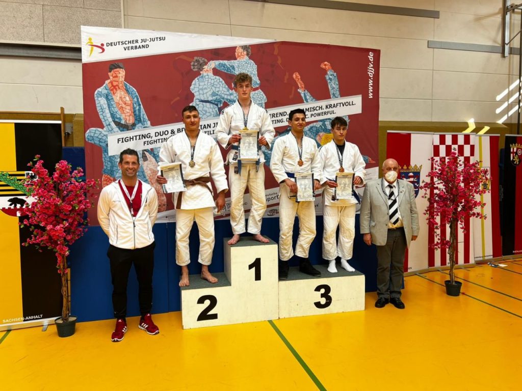 Am 26. und 27.03.2022 wurde in Maintal die Deutsche Einzelmeisterschaft für die Stilrichtungen Fighting, Duo und Ne Waza ausgerichtet. In Kooperation mit dem hessischen Landestrainer und dessen Verein JC Hofheim trat Finn in der Kategorie Fighting U21 bis 77 kg an. Bei den Auslosungen hatte Finn Glück und erhielt ein Freilos, so dass er gleich eine Runde weiterkam. Zu sehen waren somit 3 spannende Kämpfe gegen starke Gegner, welche zum Teil in den vergangenen Jahren auch vordere Platzierungen bei den Deutschen Meisterschaften belegten. Das sehr intensive Training in den letzten 6 Monaten machte sich aber bezahlt, Finn konnte alle Kämpfe klar dominieren und vorzeitig durch technische Überlegenheit (Full Ippon) für sich entscheiden. Darüber hinaus erhielt er eine Einladung zur Sichtung für den Bundeskader 2023.